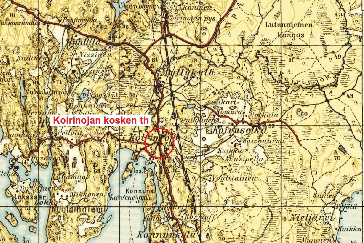 Suomalaisjoukkojen suuren saarrostushyökkäyksen ensimmäisessä vaiheessa eversti Autin joukot etenivät idästä eli Koivuselän suunnasta Koirinojan kosken tienhaaraan ja katkaisivat puna-armeijan 168.Jalkaväkidivisioonan ainoan huoltotien 10.1.1940. Tämän katkaisun myötä alkoi muodostua ns. Kitilän suurmotti. Rintamalinjojen väliin jäi Koirinojan koski (koordinaatti), joka on näyttävä luontoattraktio. ENa 2017.