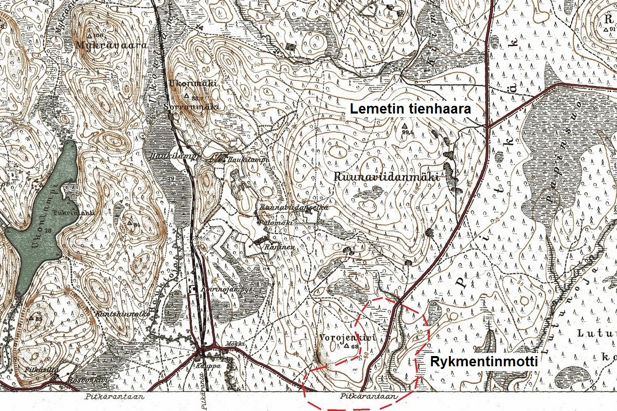 Suomalaisjoukot paloittelivat neuvostojoukkojen rivistön kahtia 7.2.1940 ja tuhosivat pohjoisen osa eli Lemetin tienhaaran motin 8.2. Seuraavana päivänä Er.P 8 katkaisi rivistön eteläisen osan maantieyhteyden lännen puolelta rautatiealikäytävän maastossa. Näin muodostunutta mottia alettiin kutsua Rykmentinmotiksi. Toinen nimitys motille oli Vorojenkiven motti läheisen mäen mukaisesti.