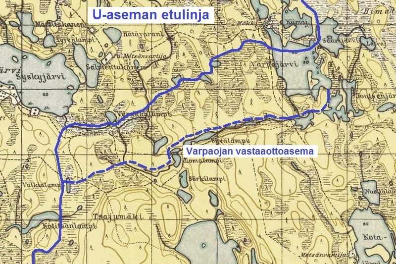 Syväriltä Keski-Aunuksen läpi viivyttänyt 8.Divisioona (mm. JR 4 ja JR 45) ryhmittyi U-asemaan Syskyjärven ja Uuksujärven väliseen maastoon 10.7.1944 mennessä. Divisioonan puolustuslohkon vasenta kaistaa puolusti 7.D:n JR 9 Uuksujärven koillispuolella.