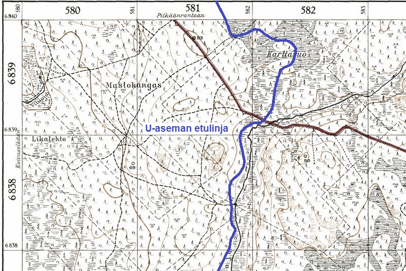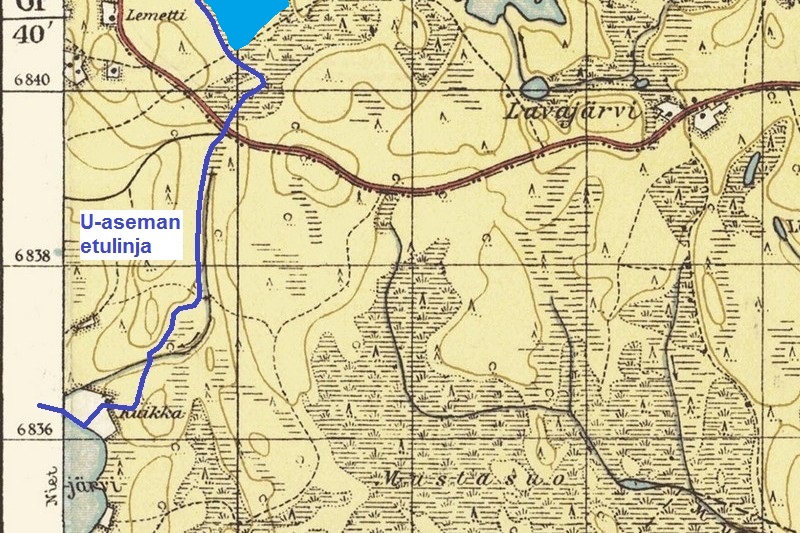 Lemetin lohkon U-aseman etulinjan bunkkeri sijaitsee maantien pohjoispuolella 100 metriä tiestä. Laite on räjäytetty sodan jälkeen. Sen vieressä on venäläissotilaiden joukkohauta. Bunkkerilta pohjoiseen Karttasuolle laitamille asti maastosta löytyy runsaasti poikkeuksellisen syviksi kaivettuja suomalaisia kenttävarustuksia. ENa 2017.
