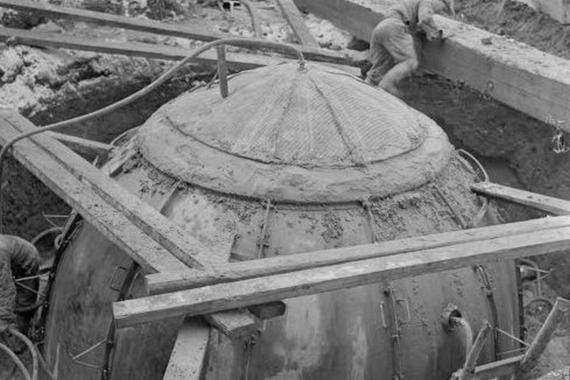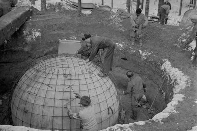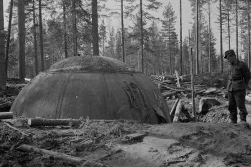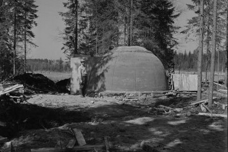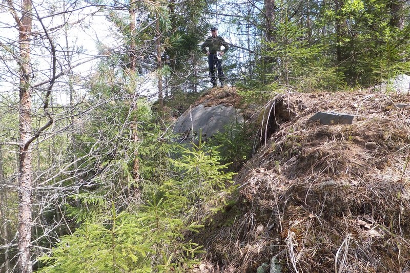 Suomalainen pallokorsu AL5581, joka on hiekkakuopan reunalla, ja joka on paljastunut suurelta osin näkyviin. ENa 2017.