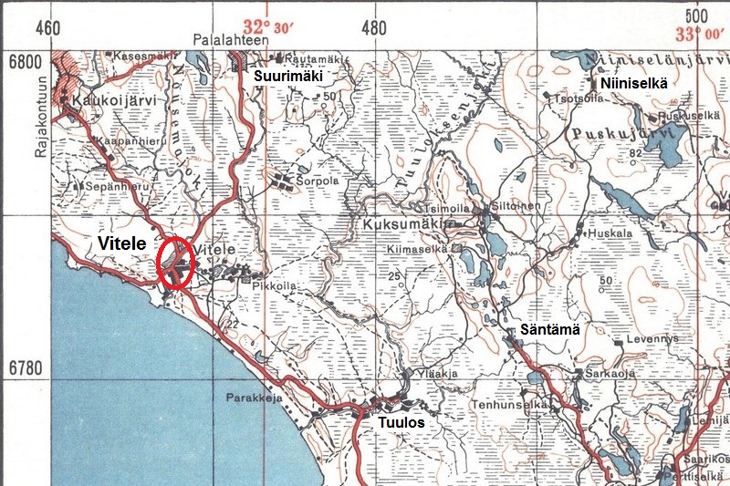 Jatkosodan vetäytymis- ja viivytysvaiheessa Vitele oli sodan tulimyrskyn keskellä pari päivää kesäkuun 1944 lopulla. Suomalaisjoukot irtautuivat kylästä ja koko Viteleenjoki-linjalta 29.6.1944. ENa 2017.