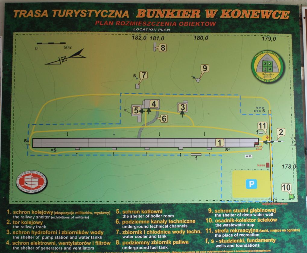Varsovasta lounaaseen noin 100 km löytyy tällainen viime sodan aikana rakennettu betoninen junasuoja. Paikka on nykyään museoituna, vastaava rakennelma löytyy etelä Puolasta läheltä Saksan rajaa. MKe 2017.