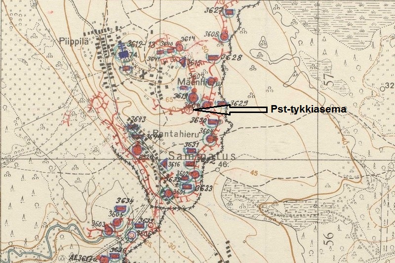 Koordinaatti osoittaa korpraali Toivo Ilomäen 75 millimetrin pst-tykin paikan Sammatuksen taistelussa kesäkuussa 1944, kun 15.Prikaatin I Pataljoona ja sille alistettu 24.Tykkikomppania sekä tykistö tuhosivat yhteensä 26 vihollispanssaria 24.6.1944. Näistä Ilomäki tuhosi 16 kpl, joista neljätoista oli keskiraskaita T-34-vaunuja ja kaksi raskaita Klim Vorošilov -vaunuja. Tykin lataajana toimi sotamies Kalle Rask. Ilomäen tuhoamat vaunut: Karjalankylä 1 kpl, Sammatus 16 kpl ja Tihveri 4 kpl.