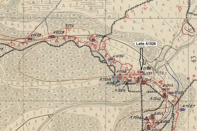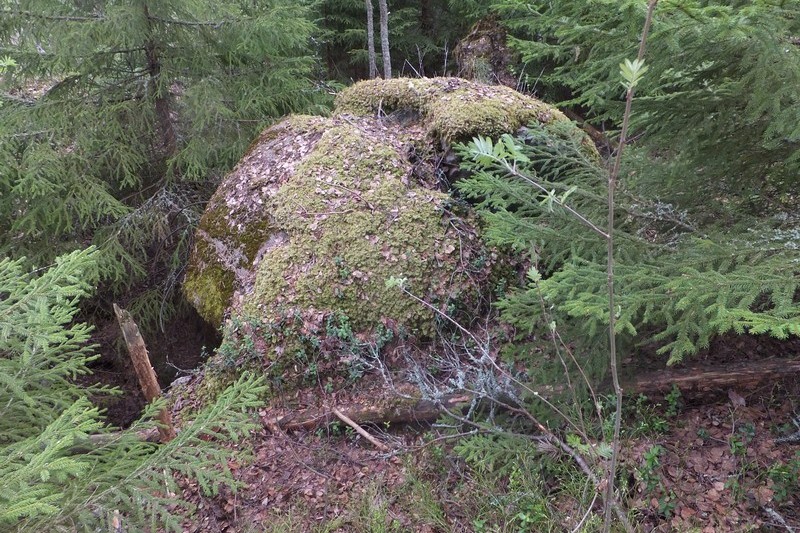 PSS-linjan laite A1526 - entinen pallokorsu - on tien länsipuolella 160 metrin päässä etulinjan tasalla. ENa 2017.
