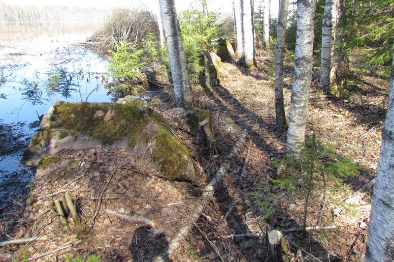 Mäkrijärven PSS-linjalle rakennettiin 120-130 metriä etulinjan etupuolelle (itäpuolelle) panssarikivieste, joka jatkuu lyhyen matkaa myös järvessä. ENa 2017.