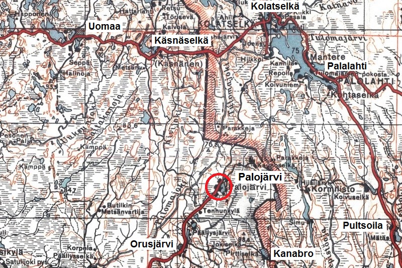 Jatkosodan vetäytymis- ja viivytysvaiheessa 7.Divisioonalle alistettu JR 45:n III Pataljoona (8.D) viivytti 3.-4.7.1944 vihollista Palojärveltä Kolatselän suuntaan, pohjoiseen. Erillinen Pataljoona 21 ja Osasto Virkkunen (mol. 8.D) siirtyivät Palojärven kautta länteen Tulemajoen yli 3.7.1944. Tälle suunnalle alkoi muodostua kriisi, kun vihollinen hyökkäsi heti joen yli perään, sillä tuota kautta meni tieura Käsnäselkään eli vielä paljon idempänä taistelevan 7.Divisioonan selustaan. Vihollisen panssareiden tukema rynnistys saatiin kuitenkin torjuttua 8.Divisioonan joukkojen yhteistoiminnalla Kivioja-linjalla, 10 kilometriä Käsnäselän eteläpuolella, 5 km Palojärven luoteispuolella. ENa 2017.