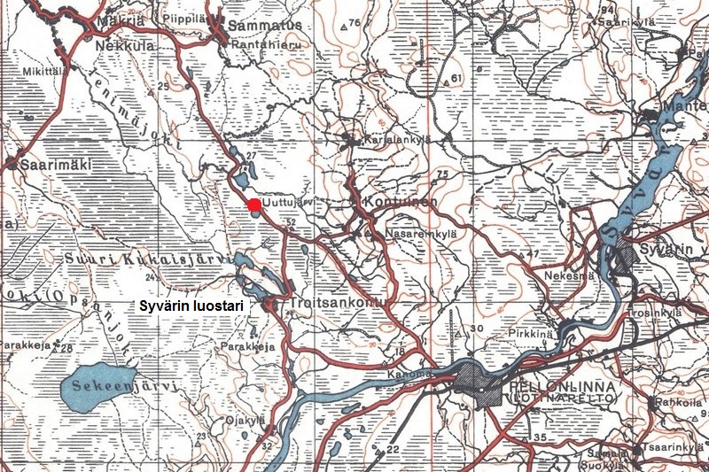 Jatkosodan aikana Uutujärven kylässä sijaitsi reservi- ja vastahyökkäyspataljoonien majoitus-, harjoitus- ja koulutuspaikka sekä huollon varastoja. Kylän liepeille rakennettiin 5.Divisioonan juhla- ja koulutustila, Uutulinna. ENa 2017.