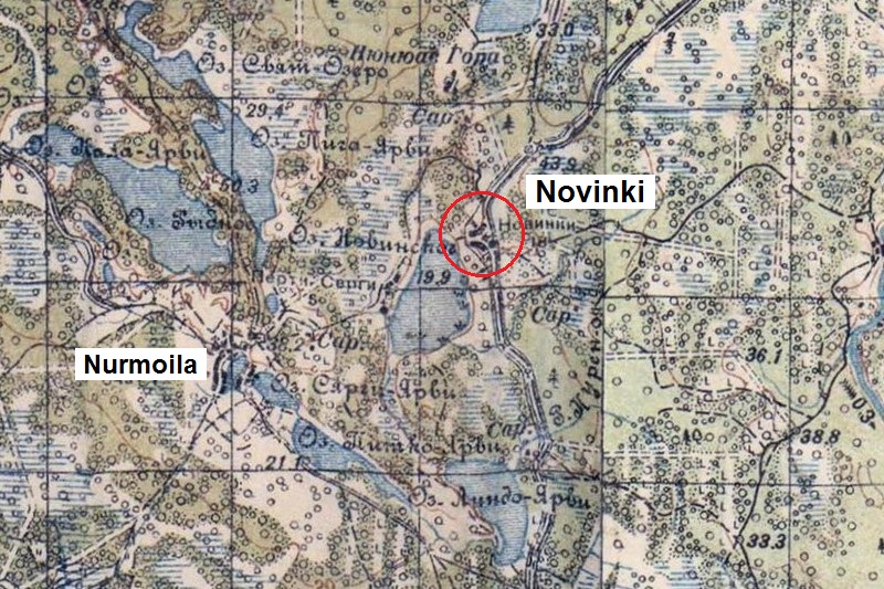 Novingin kylän valtasi II/JR 13 (17.D) 6.9.1941. Jatkosodan vetäytymisvaiheessa Novingissa viivytti II/JR 4, joka irtautui kylästä pohjoisluoteeseen 26.6.1944, kun vihollinen työnsi Aunuksenkaupunki-Prääsä -maantielle vahvoja voimia sekä etelästä että idästä. ENa 2017.