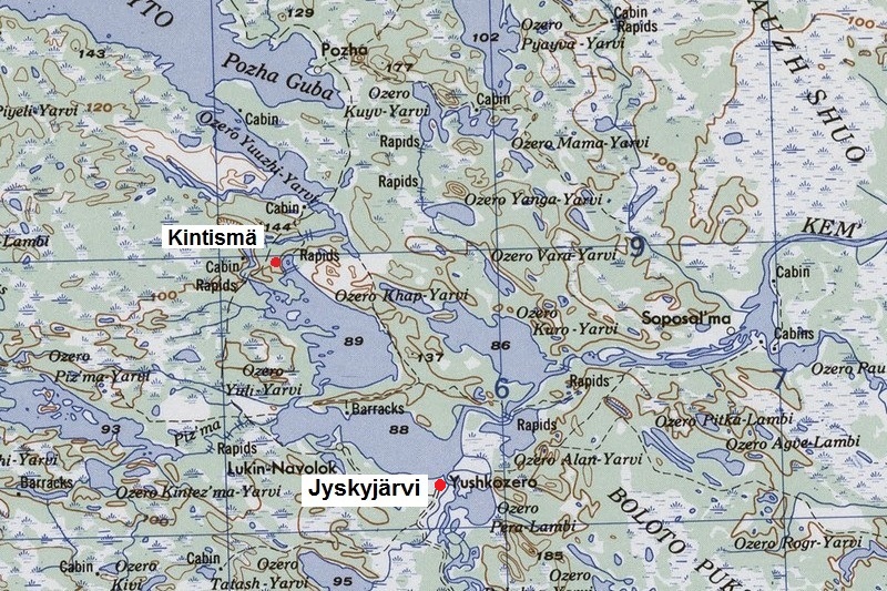 Talvisodan alussa osa Suomussalmen siviiliväestöä jäi venäläisten hyökkäyskiilojen väliin pussiin. Nämä siviilit siirrettiin helmikuussa 1940 Jyskyjärven lähelle Kintismään siviilisotavankileiriin. Vankeutta kesti kesäkuuhun 1940 asti. Vienan Kemijoen rannalla sijaitseva Kintismä oli metsätyöläisten kämppäalue, metsäpunkti. Lähimpään kylään, Jyskyjärvelle, oli matkaa toistakymmentä kilometriä. Rakennuksia punktilla oli seitsemäntoista, joista majoitusparakkeja oli neljä, joista kussakin kuusi huonetta, joihin väki sullottiin. Kunkin parakin halki oli käytävä, missä oli lämmityslaitteena kamina. Huoneet olivat käytävän molemmin puolin. Leirin vartijoille oli oma parakkinsa, ja yksi parakki toimi ruokalana. Lisäksi olivat erilliset rakennukset mm. leipomolle, sairastuvalle ja saunalle.