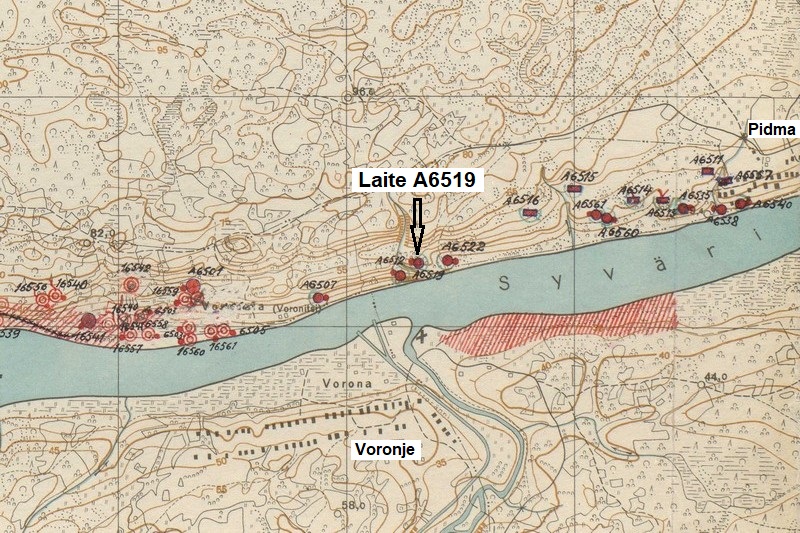 Joukkomme linnoittivat tehokkaasti Syvärin pohjoisrannan Jatkosodan aikana. Linnoiteketjun eräs konekiväärikupubunkkeri, laite A6519, sijaitsee virran vesirajassa. Laitteen panssarikupu on tehty Suomessa. Tällaisia kupuja tehtiin Vuoksenniska Oy:n, Karhula Oy:n ja Värtsilä-Yhtiöiden tehtailla, mistä ne kuljetettiin junilla ja kuorma-autoilla linnoitustyömaiden luo. ENa 2017.