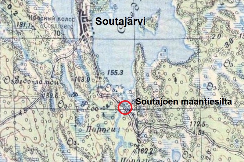 Jatkosodan hyökkäysvaiheessa Prikaati Kuusisaaren joukkoihin kuulunut SissiP 1 eteni lännen suunnasta ja saavutti Soutajoen 18.10.1941. Vihollinen oli asemissa räjäytetyn sillan takana joen itäpuolella. Seuraavana päivänä SissiP 1 ja II/JR 10 hyökkäsivät yli joen ja jatkoivat etenemistä itään. Samaan aikaan 3./PionP 22 rakensi uuden maantiesillan. Tämän tapahduttua polkupyörin varustettu SissiP 2 siirtyi hyökkäyksen kärkeen.