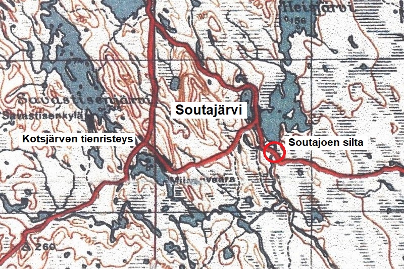Sodan viivytysvaiheessa kesällä 1944 taistelut Soutajoella alkoivat 3.7.1944. Pioneerit olivat räjäyttäneet maantiesillan, ja 21.Prikaatin III Pataljoona oli ryhmittynyt puolustukseen joen länsirannalle. Taistelupäivän mittaan vihollisen tulitukeen yhtyivät raketinheittimet ja panssarivaunut, ja puna-armeijalaiset yrittivät ylittää joen syöksyveneillä. Suomalaistykistö ja -kranaatinheittimistö torjuivat yrityksen. III Pataljoona sai luvan irtautua jokilinjalta, ja se marssi länteen Kotsjärven maastoon ns. Savastilan linjalle 4.7.1944. ENa 2017.