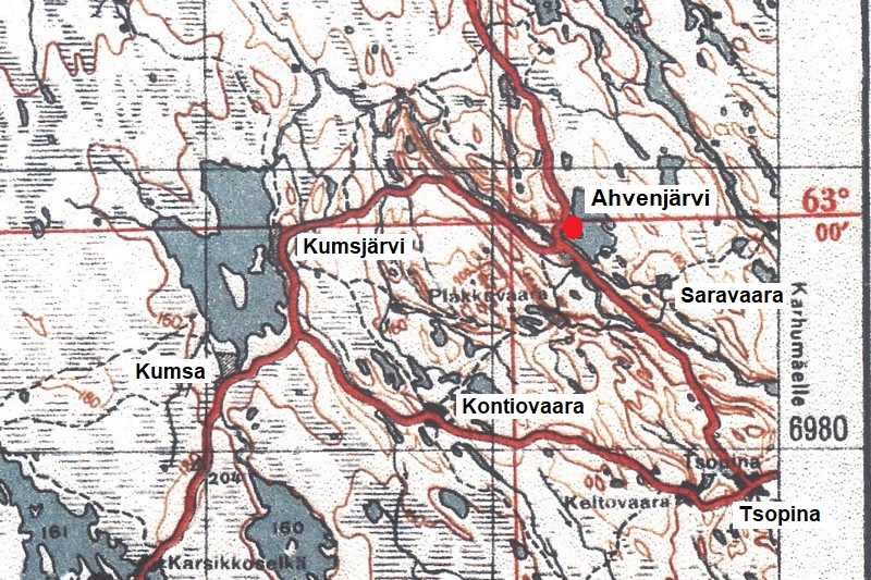 Ahvenjärven (Ostretšjen) valtasi I/JR 26 koukkaamalla kylään pohjoisluoteesta 1.11.1941. Kylästä irtauduttiin länteen kesäkuun 1944 lopulla. ENa 2017.