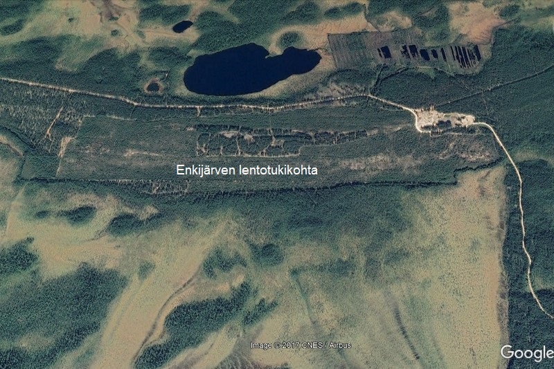 Jatkosodan aikainen venäläinen Enkijärven sotilaslentotukikohta sijaitsee 45 kilometriä Louhen taajaman kaakkoispuolella, 9 kilometriä Enkijärven kylän pohjoispuolella. Kiitotien pituus on 2 320 metriä, pääsuunta W-E. ENa 2017.