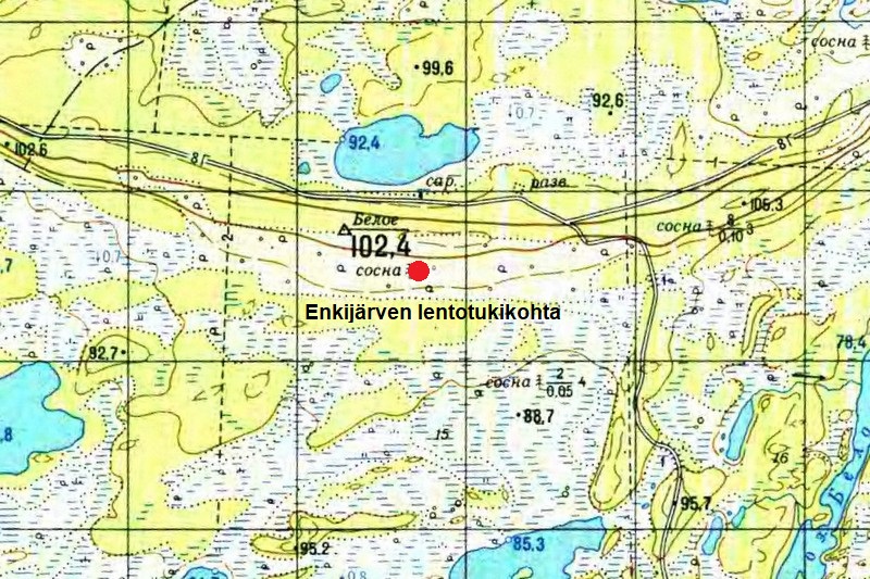 Jatkosodan aikainen venäläinen Enkijärven sotilaslentotukikohta sijaitsee 45 kilometriä Louhen taajaman kaakkoispuolella, 9 kilometriä Enkijärven kylän pohjoispuolella. Kiitotien pituus on 2 320 metriä, pääsuunta W-E. ENa 2017.