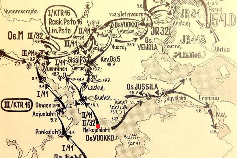 Everstiluutnantti Vuokon johtaman Osasto Vuokon, johon kuuluivat II/JR 11, II/JR 32 ja 2./Pion.P 34, oli siis suoritettava ylimeno Melkajanlahden kohdalla, hyökättävä maantien suuntaan pohjoiseen ja vyörytettävä Pistojoen itärannalla olevat vihollisasemat Korpijärveen saakka. Tukevat joukot (Pion.P 34, Pion.P 5, 4.Sill.K, 4.Pion.Kol) vastaisivat ylimenon järjestelyistä. Tykistötukena toimisi III/KTR 16.