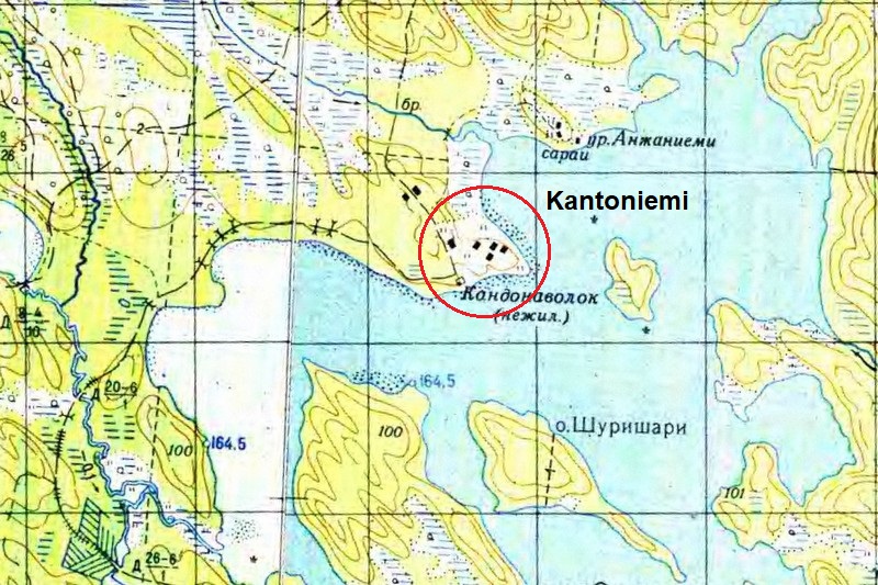 Pistojärven rannalla sijaitsi Kantoniemen kylä, jonka miehitti 6./JR 12 5.7.1941 illalla. Kylä oli tyhjillään ja polttamaton. Komppania oli edennyt rajalta erämaan läpi reilut 30 kilometriä, ja sen muonat alkoivat käydä vähiin. Kenttäkeittiö ja töpinä olivat yhä tiettömän taipaleen takana valtiorajalla. Tällöin III AK:n toimesta komppaniaa tuettiin yhdellätoista säkillisellä muonaa, jotka saksalainen lentokone pudotti Kantoniemeen vielä samana iltana.
