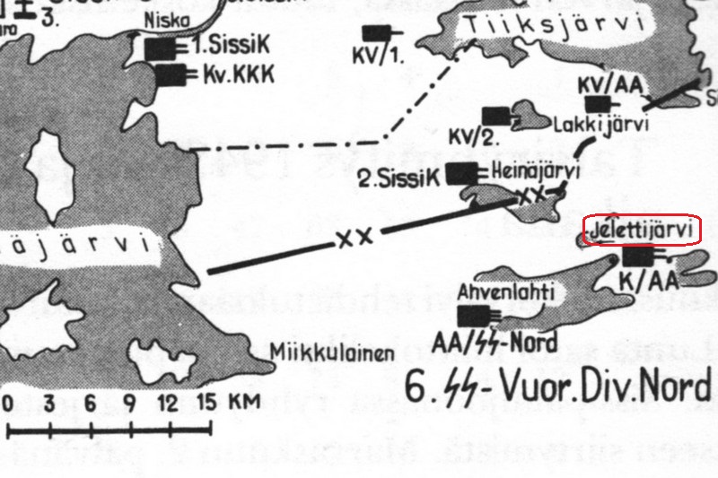 Jelettijärven kylä sijaitsi samannimisen järven itäosassa saksalaisen 6.SS-Divisioona Nordin vastuualueella. Kylään oli ryhmitetty yksi komppania divisioonan Tiedustelupataljoonasta (Aufklärungs-Abteilung Nordista) Jatkosodan asemasotavaiheen aikana. Paikka oli Kiestingin rintaman kenttävartiopuolustuksen etulinjaa. ENa 2017.