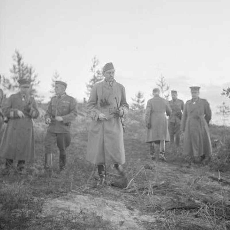 Hän jatkoi ja alkoi puhua Gunnar Johanssonista, jonka reportaašeja hän oli lukenut Huvudstadsbladetista: - Johanssonin tyyli on hyvä, sanoi hän. Viisi kenraalia seisoi taaempana. Olin melko häkeltynyt, sen tunnustan. Mannerheimin seuramieheksi minusta ei ollut. Kun lähdimme, ilmassa oli savua, joka nousi kranaattikuopasta aivan ääreltämme. Marsalkka vilkaisi kuoppaan.