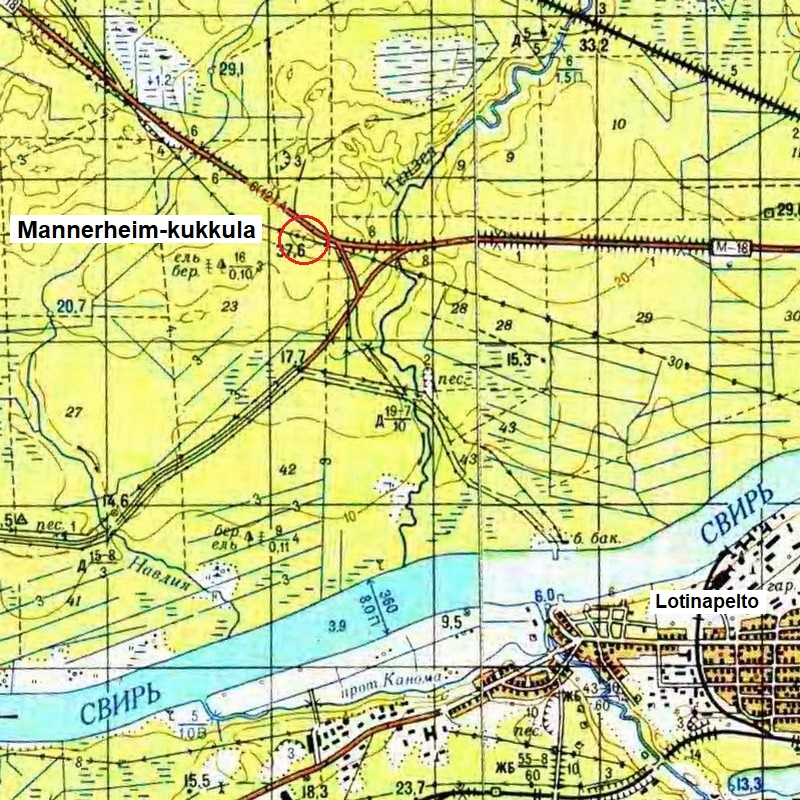 Liityimme Aunuksenkaupungissa autojonoon, joka suunnisti kohti Syväriä. Oli iltapäivä. Päätieltä taitoimme syrjätielle, nummimaastoon, ohitimme kauniit pikkujärvet ja myllypadon, jonka lampeen puut kuvastelivat. Kun tavoitimme tähystyspaikan, josta selvästi näkyi niittyaukeaman takainen Syvärin joki, paistoi aurinko. Sotamarsalkka lausui: