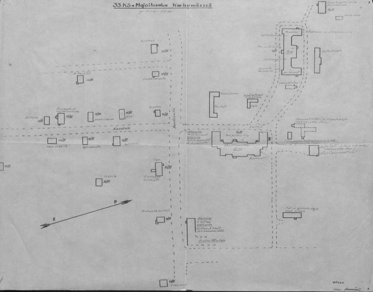 Karhumäen kenttäsairaala 33 (KS 33) oli toiminnassa aina heinäkuuhun 1944 asti. Sen B osasto on vielä pystyssä, A osasto on purettu. Kortteli näyttää ja vaikuttaa nykypäivänä asumalähiöltä ja sairaalarakennus on asumis käytössä. MKe 2019