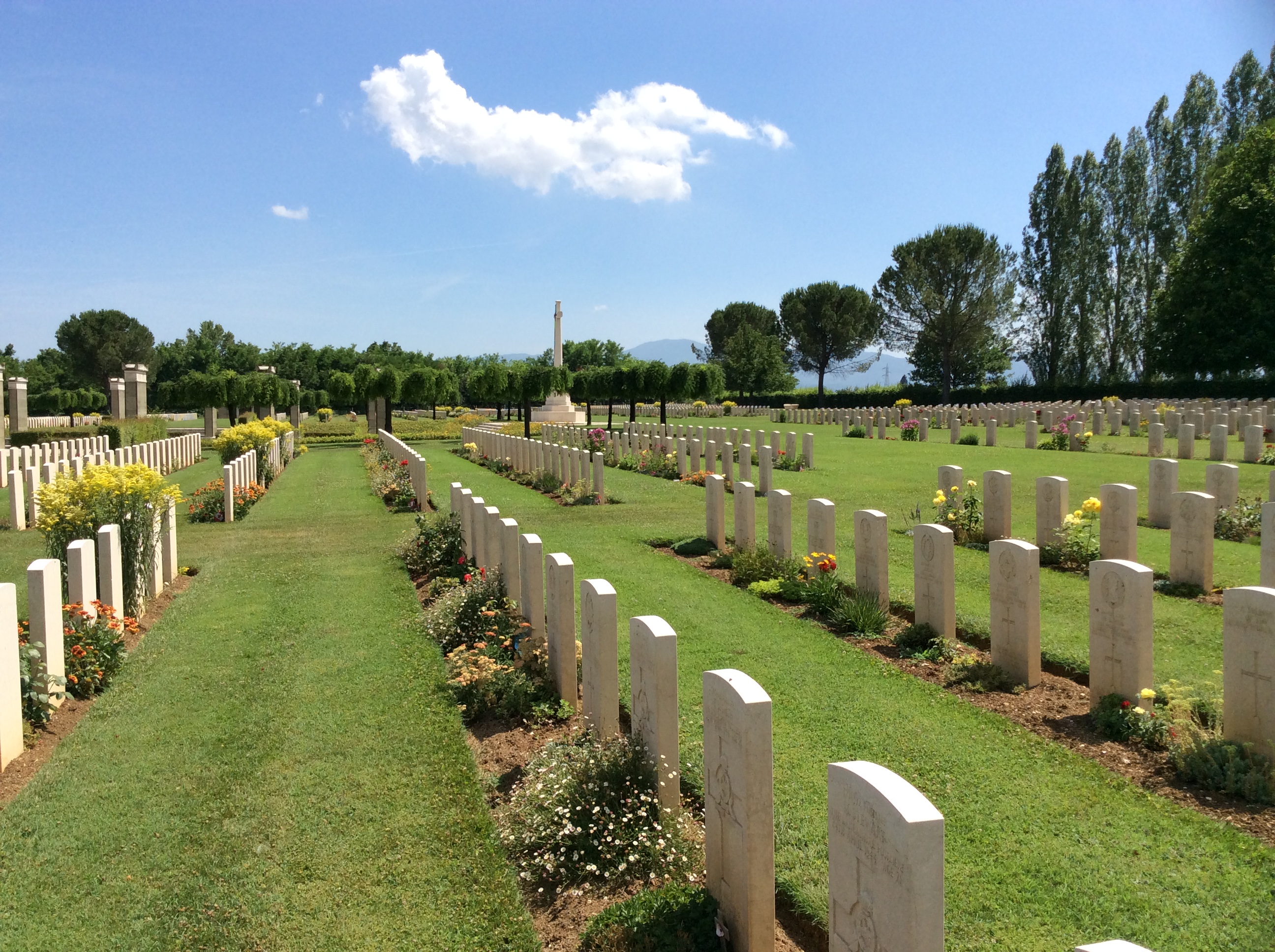Kansainyhteisön sotilashautausmaa Cassino. Hautausmaan paikka valittiin alun perin tammikuussa 1944 mutta hautauksia päästiin suorittamaan vasta viiden kuukauden kuluttua saksalaisten vetäydyttyä ja taistelujen taannuttua. Hautausmaalle haudatuista 4271 sotilaasta valtaosa on kaatunut Cassinon kaupungin sekä viereisen luostarikukkulan Monte Cassinon taisteluissa tammi-toukokuussa 1944. Erikoisuutena voitaneen pitää neuvostosotilas Pantellei Lukianenkon hautaa. Lukianenko oli neuvostolähetystön mukana seuraamassa taisteluja kun hän sai surmansa miinaräjähdyksessä. Kuvat OPV