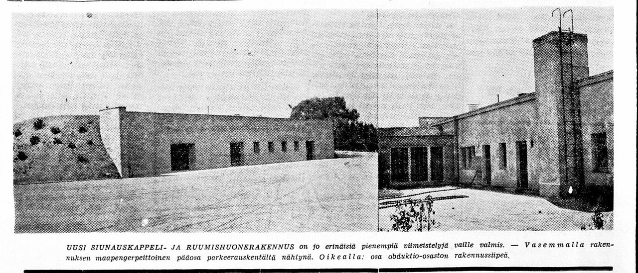 Rakennus on Viipurin uusin siunauskappeli, sen rakentaminen aloitettiin syyskuussa 1938 ja valmistui tasan vuotta myöhemmin. Rakennuksen julkisivu on Kannaksentielle päin. Rakennuksen suunnitteli kaupunginarkkitehti Ragnar Ypyä.