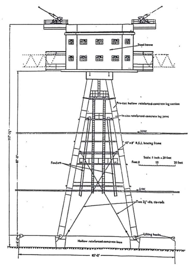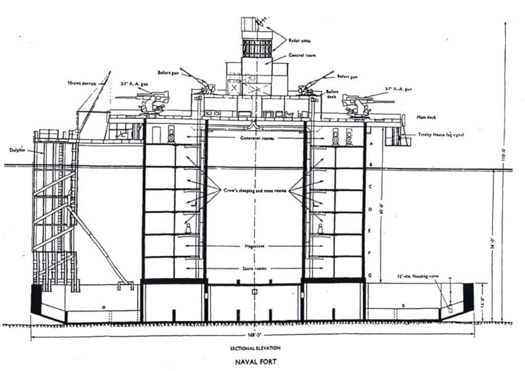Rakennelmia oli kahdenlaisia. Lähempänä rannikkoa olevat kuuden tornin ryppäät on rakennettu teräspylväiden päälle. neljässä torvissa oli It-tykit, kahdessa muussa oli valonheittimet ja tarvikevarastot. Aseistuksena neljässä oli 3,7 tuuman QF tykki. Tornien välit oli yhdistetty kulkusilloilla. Nämä tornit olivat maavoimien eli ilmatorjunnan hallinnassa. Torjuntakeskuksia oli aikanaan kolme Nore, Red Sands ja Shivering Sands, kaikki aluevesirajan sisäpuolella.