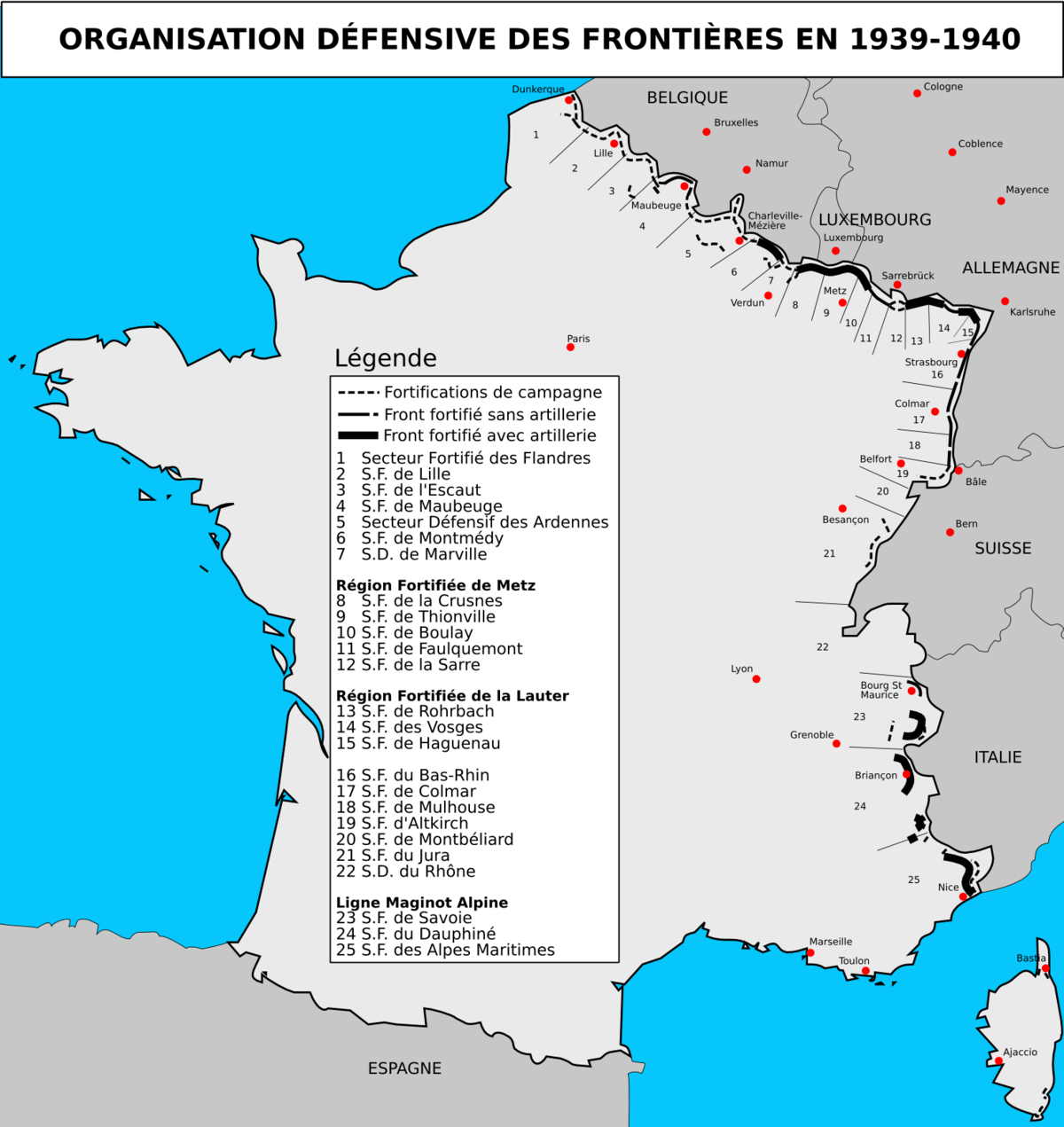 Maginot-linja rakennettiin pääosin ensimmäisen maailmansodan jälkeen turvaamaan Ranskan itä rajaa etenkin Saksaan vastaan. Vaikka toisessa maailmansodassa Ranska valloitettiinkin vain kuudessa viikossa, Maginot-linja oli toiminut kuten oli suunniteltu; se olisi pysäyttänyt Saksan suoran hyökkäyksen, Saksan tietoisen linjasta lähti kiertämään Belgian ja Hollannin kautta. Vaikka joitakin bunkkereita ja linnakkeita menetettiin, linjaa ei koskaan murrettu.