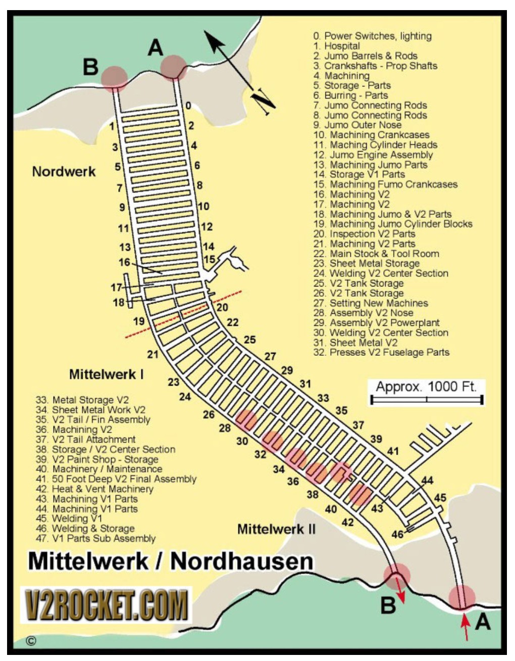 Hitlerin annettua Heinrich Himmlerille 22. elokuuta 1943 määräyksen käyttää keskitysleirityöläisiä A-4-tuotantoon 107 vankia saapui Nordhauseniin Buchenwaldista 28. elokuuta 1943, ja heitä seurasi 1 223 vankia 2. syyskuuta. Peenemündeestä tulleet työläiset lähtivät matkaan 13. lokakuuta 1943.