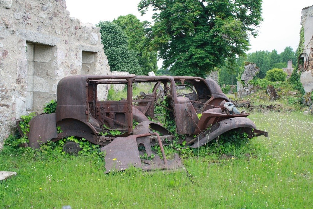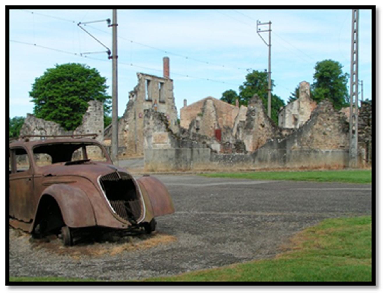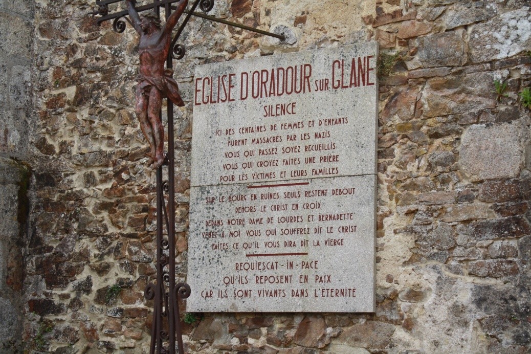Oradour-sur-Glanen pieni kylä sijaitsee noin 20 km Limogesista lounaaseen. Toisen Maailmansodan loppuvaiheessa kylä joutui tuhon omaksi 10. kesäkuuta 1944. Waffen-SS tuli kylään ja kostotoimena komensivat asukkaat kylän kirkkoon, jonka he polttivat.