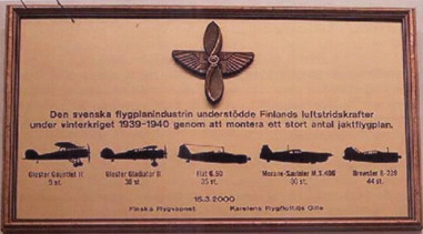 Museorakennuksen edessä on muistokivi, johon on kiinnitetty laatta Suomen talvisotaan osallistuneen Ruotsalaisen Lentorykmentti F 19 kunniaksi.