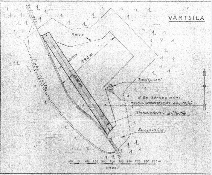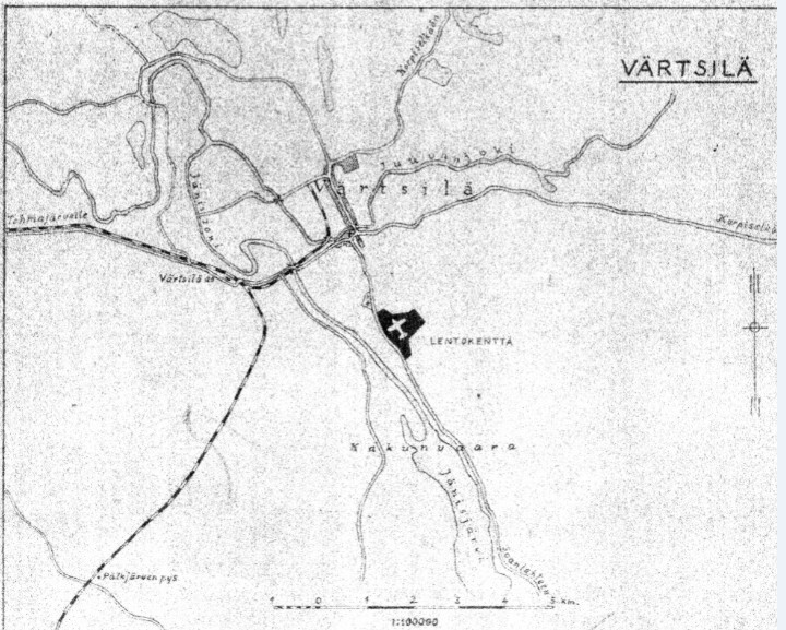 Lentokenttä sijaitsi kaksi kilometriä Värtsilän kirkolta etelään, Värtsilä-Suistamo -tien itäpuolella. Kentän laskualueen laajuus oli 1370 m x 780 m; pääsuunta SE-NW, mikä osuus kiitotiestä oli myös vahvistettu. Kentän maaperän laatu oli savensekaista soraa ja hiekkaa. Vahvistetulla kiitotiellä ei kelirikkoa juurikaan esiintynyt. Kentällä oli yksi lentokonehalli, ja koneiden naamiointi toteutettiin kentän laidan metsään. Majoitustilat olivat kenttäalueella ja Värtsilässä. Lähin rautatieasema sijaitsi Värtsilässä, ja korjauspaja Värtsilän tehtaalla. ENa 2016.