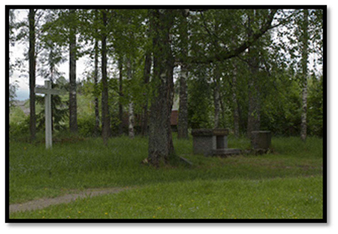 Kirkon paikalla on muistomerkki. MKe 2014.