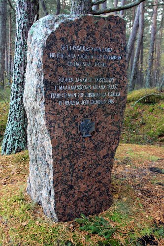 Kun hautausmaan kohdalta ajetaan Jurmalaan päin noin puolisen kilometriä, näkyy vasemmalla viitta, jonka viesti alkaa Somu jegeru (jne.). Se osoittaa rannalle päin. Polun päässä, luonnonkauniilla rantatöyräällä on nykyään Salpalinjalta tuotu graniittikivi. Vieressä on infotaulu jääkäreistä. Rinteessä näkyyt juoksuhautojen ja korsujen paikkoja. Portaat vievät alas rantaan.