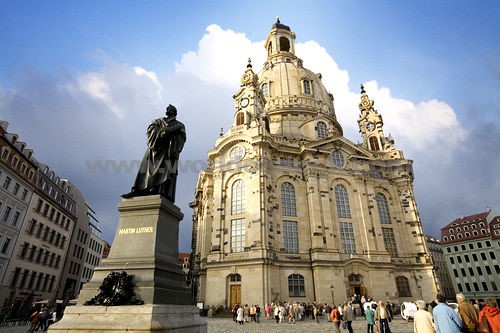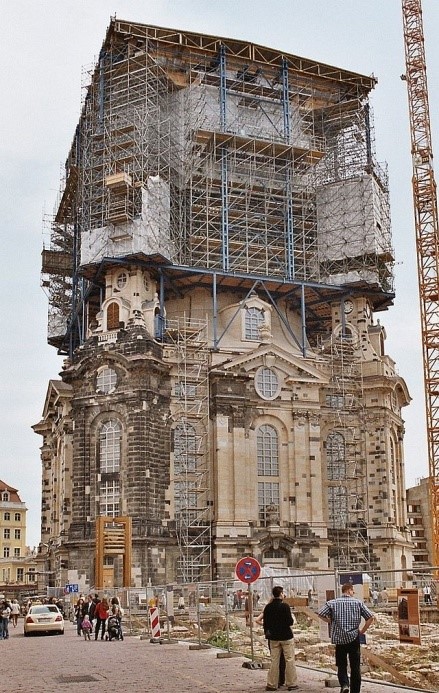 Kaupunki jäi sodan jälkeen ensin Neuvostoliiton valvonta alueelle ja lopulta uusi valtio DDR hallitsi kaupunkia. Kirkko oli raunioina aina 90- lopulle asti. Sitä ryhdyttiin entisöimään kansainvälisin arkkitehtiopiskelioiden ja lahjoitusten voimin, näin mittava työ saatiin toteuteksi. Kirkko vihittiin uudestaa käytöön 1.2.2005, kirkko on alun perin rakennettu vuosina 1726-1743. Entisöinti kesti reilut 10 vuotta. 90-luvun lopulla kirkon läheisyydessä oli näkyvillä vielä paljon sodassa raunioituneita rakennuksia.