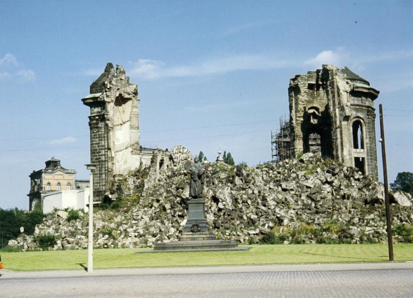 Dresdenin kaupungin keskusta tuhoutui lähes kokonaan Yhdysvaltain ja Britannian ilmavoimien pommituksissa maailmansodan loppuvaiheissa 13. helmikuuta – 15. helmikuuta 1945.