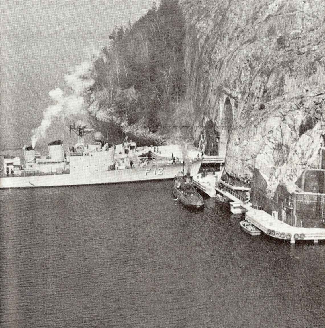 Tukikohtaa alettiin rakentamaan 1950 ja 19 vuotta myöhemmin se oli valmis. Rakentamisen aikana 1,5 miljoonaa tonnia kalliota louhittiin. Tukikohdalla on 3 satamaa, normaaleille hävittäjille ja sukellusveneille. Tukikohtalue on maanalla useita km2 ja tietä maan alla on noin 20 km. Kapea tunneli yhdistää saaren mantereeseen.