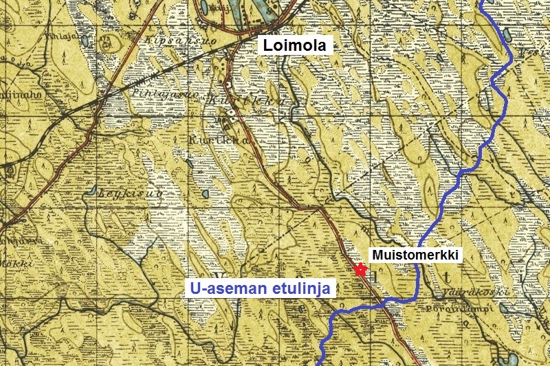 U-asema, venäl. muistomerkki Käsnäselän tie Loimola