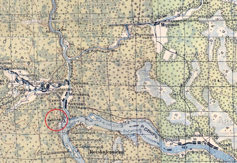 Nikola oli pieni kylä Iivinänjoen suulla Rovskojenniemeä vastapäätä. Kylässä toimi joukkojemme perustama yksiraaminen saha, jonka tuotteita käytettiin laajalti Syvärin rintaman erilaisissa rakennustöissä. Tukit uitettiin sahan ääreen Iivinänjokea pitkin, ja valmiit tuotteet lähtivät tarvitsijoille vesitiekuljetuksina. 1.Sillanrakennuskomppania toimi Nikolasta käsin keväällä 1944, kun se rakensi Rovskojen 507-metrisen sillan Syvärin yli kohtaan 3 km Nikolasta alavirtaan.