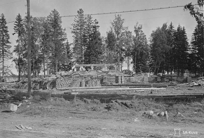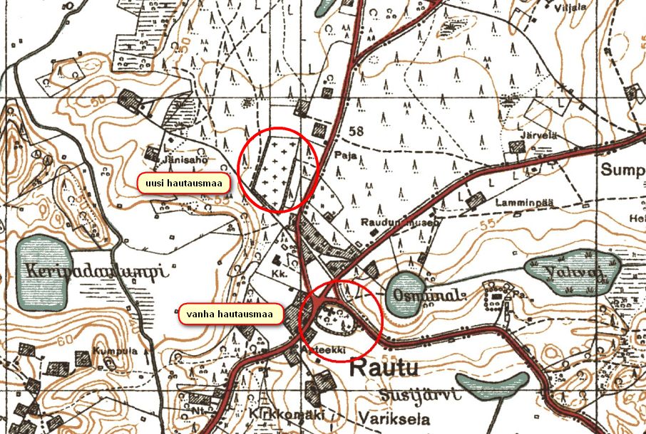 Kirkon paikan on vallannut kulttuuritalo. Vanhan ja uuden hautausmaan yhteydessä on sotilashautausmaa. MKe 2014.