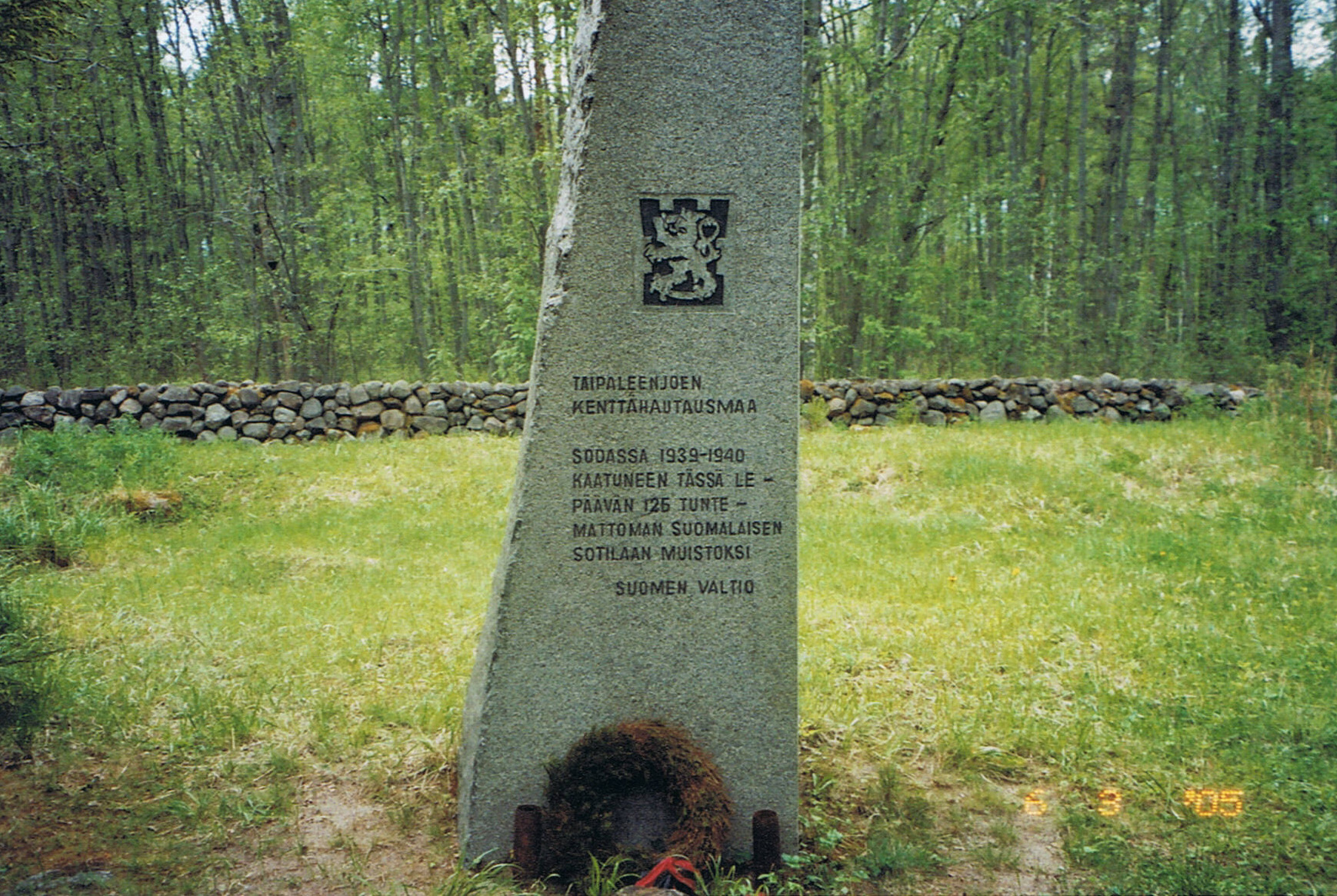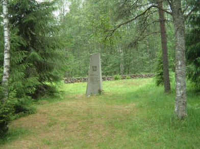 Perinteinen tapa, kun käydään paikalla, nostellaan kiviä ympäröivän aidan päälle. Paikka löytyi vasta 90-luvun alussa. Täällä oli juhlallinen paljastustilaisuus elokuussa 1996. Haudattu 126 tuntematonta suomalista soturia. MKe 2014.