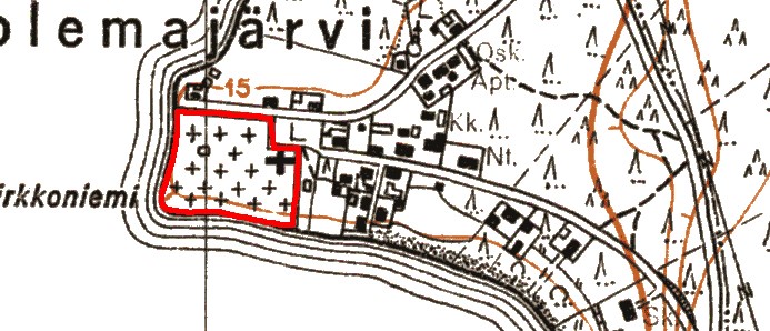 Kirkko on tuhoutunut jo sotien aikana ja hautausmaa myöhemmin. Alueella toimii pietarilaisten lasten kesäleiri ja alue on suljettu ja vartioitu. Hautausmaalle on pystytetty muistomerkki vuonna 1995. Kirkosta ei ole muuta jäljellä kuin muistokivi. MKe 2014.
