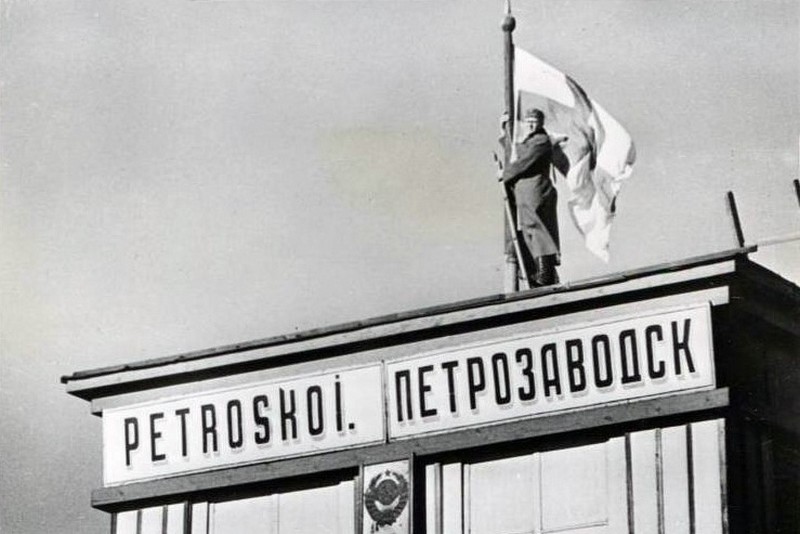 Äänislinnan rautatieasema sijaitsi reilut kaksi kilometriä Petroskoin nykyiseltä asemalta Karhumäen suuntaan. ENa 2017.
